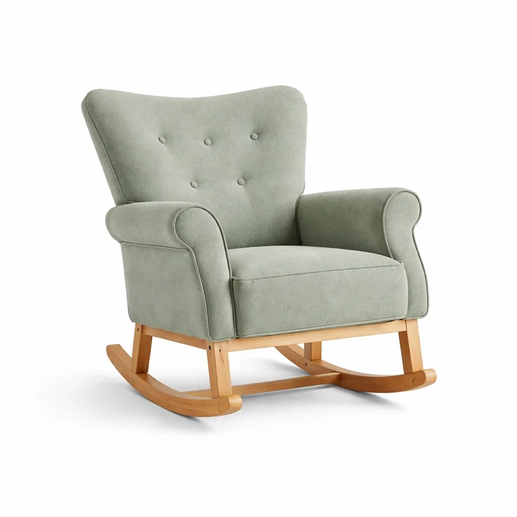 Sedia a dondolo in legno e tessuto verde salvia