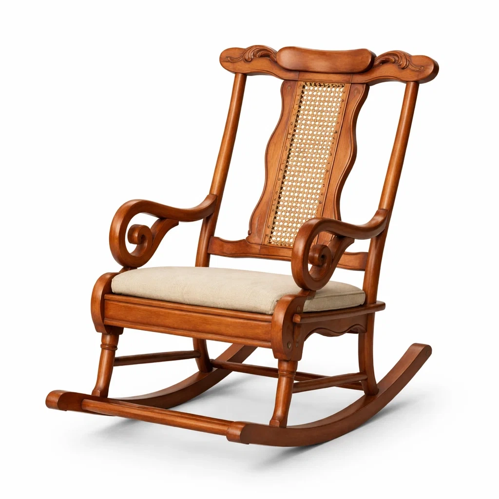 Sedia a dondolo in legno massello naturale