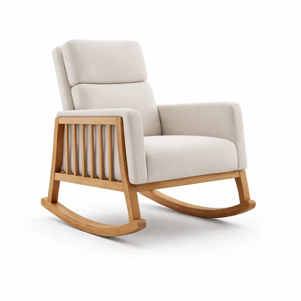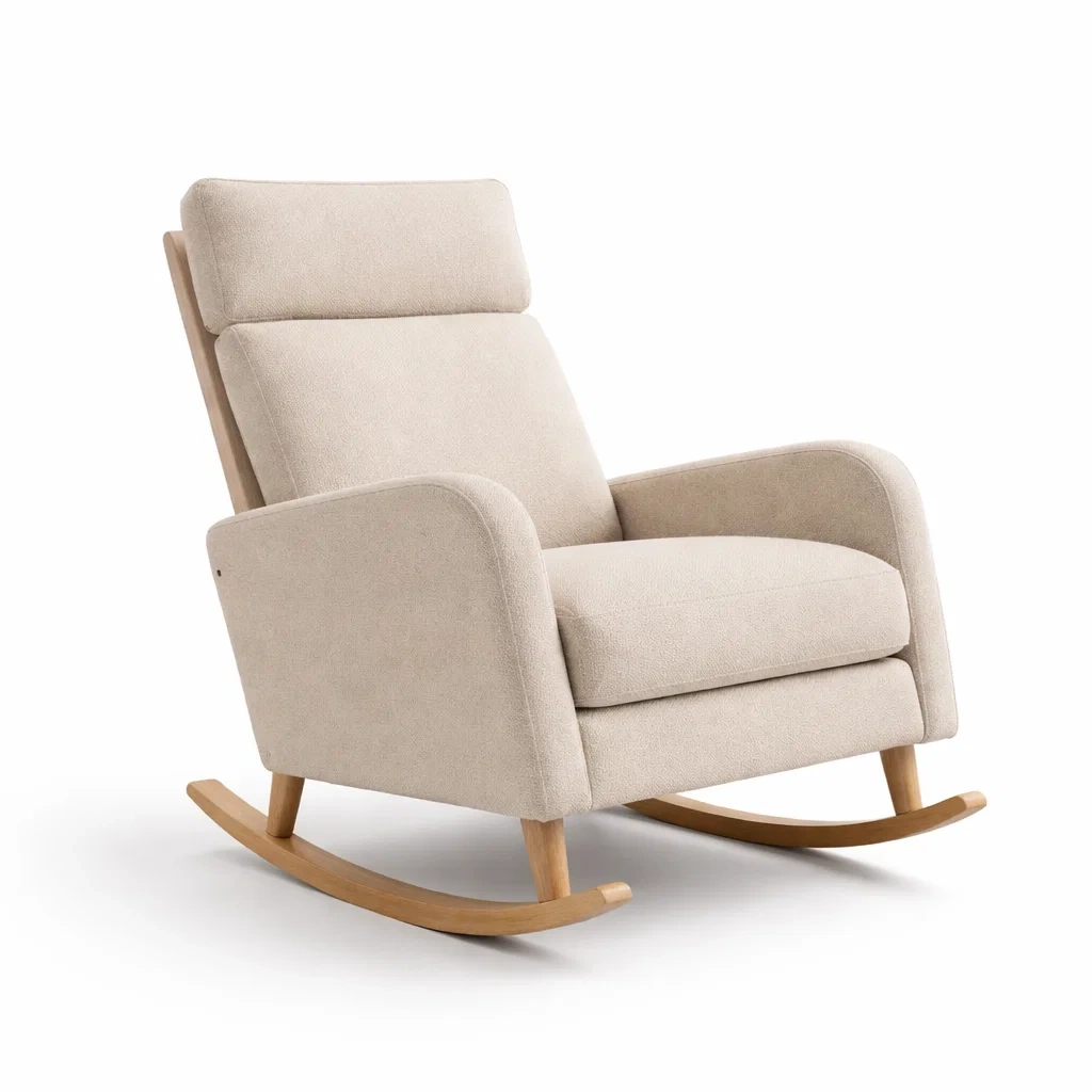 Sedia a dondolo in tessuto beige e legno