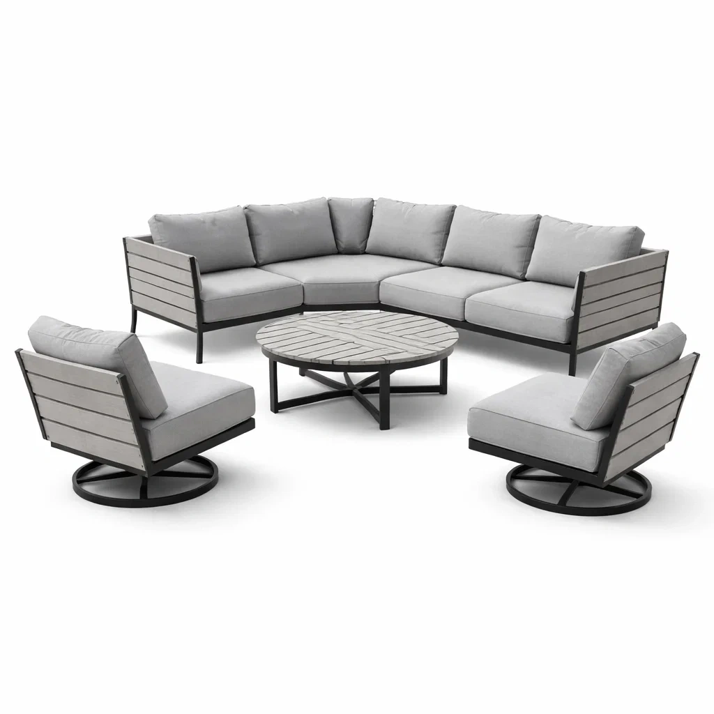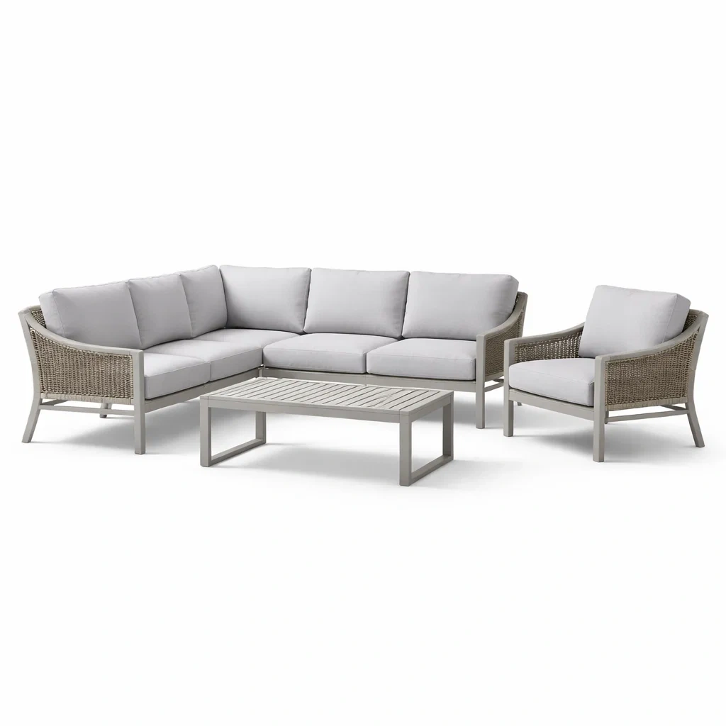 Set di divani angolare da esterno in alluminio con cuscini in tessuto grigio