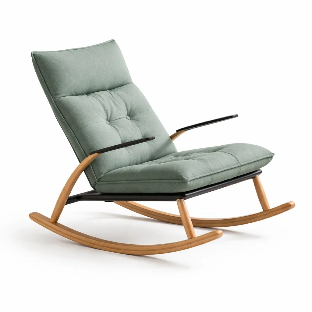 La sedia a dondolo presenta una struttura in legno con rivestimento in poliestere e braccioli in metallo. Il prodotto ha una lunghezza di 92 cm, una larghezza di 65 cm e un'altezza di 100 cm. La seduta e lo schienale sono imbottiti per un maggior comfort. Il peso massimo supportato è di 120 kg.